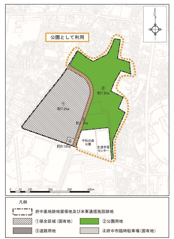 3.そして、今回の話題の中心となる「府中基地跡地留保地」