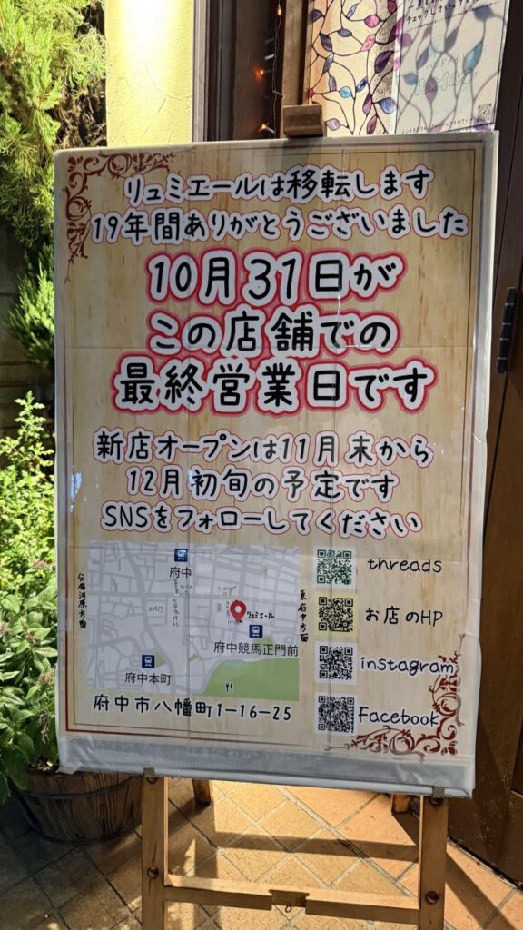 お店のInstagramには「分倍河原にお店を構えて19年、本当に楽しく場所を変えるのは寂しい気持ちもありますが、私たちの新たな挑戦をどうか応援してください」と投稿されています。