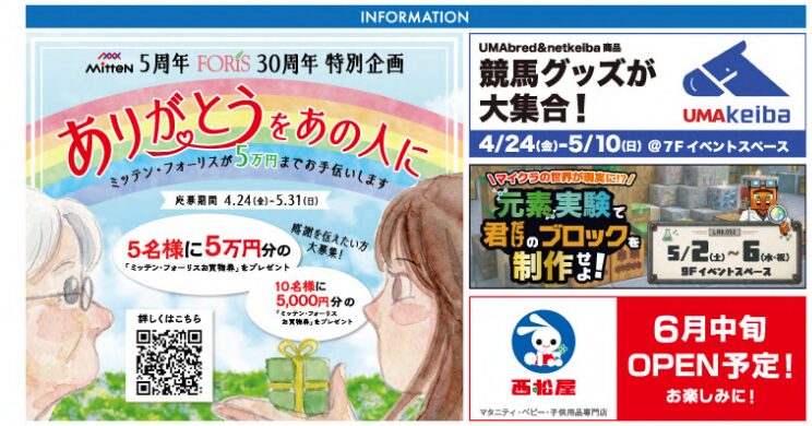 今回の出店情報は、ミッテン府中・専門店街フォーリスのWEBチラシより公式案内されております↓
