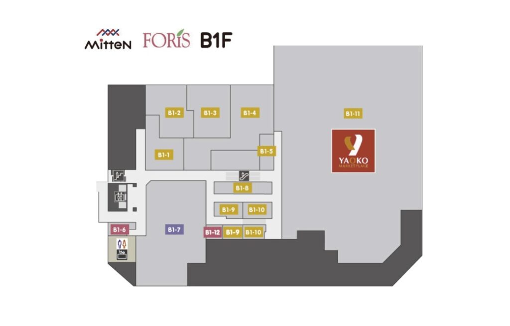 フロアガイドではB1-8区画に位置しており、向かいには「富澤商店」や「沖縄宝島 by しなまつり」がある場所になります。