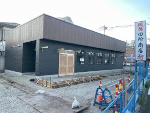 先月からお店っぽい風貌の建設をしているなとは思っていたのですが、とうとう看板が掲げられ店舗名が判明しました!