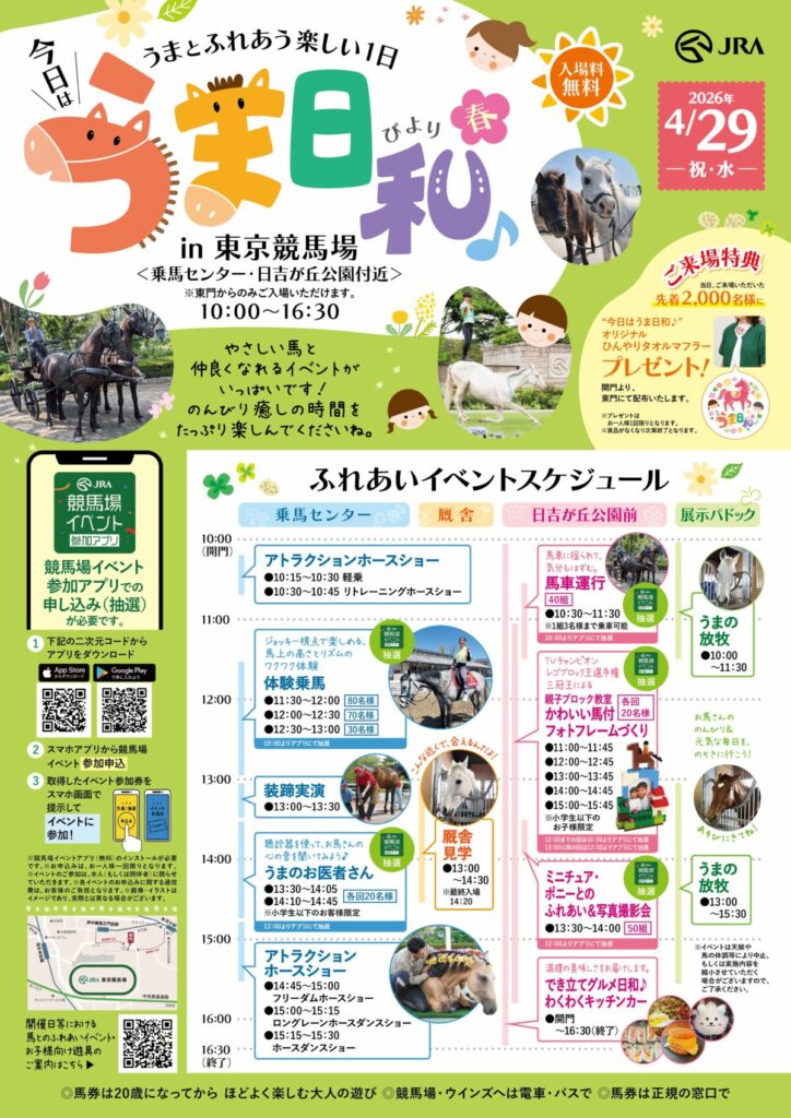 2026年4月29日(祝・水)に東京競馬場の乗馬センター&日吉が丘公園付近で、『今日はうま日和♪』が開催されます!